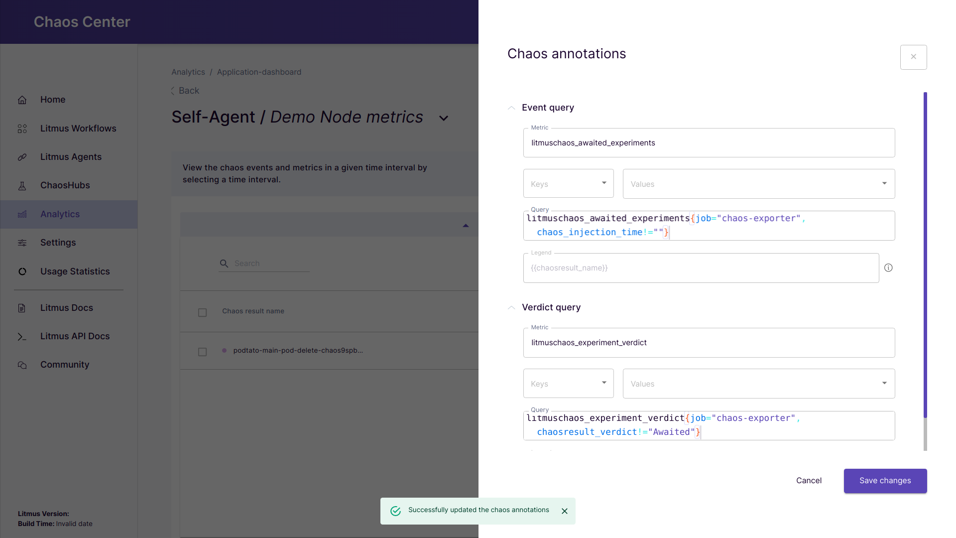 - Verdict query: Query related to the verdict/results of the chaos injection. You may edit them as per your requirement.