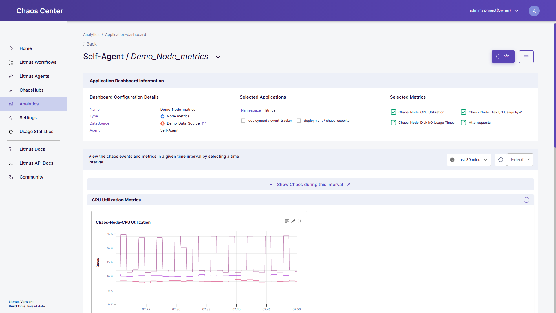 button you will be directed to the dashboard configuration page where you can tune the queries. To learn more about query editing click here.Show chaos during this interval: Among all the chaos injections that have been scheduled by the user, chaos events that lie within the selected time interval are listed in form of a table. You may select/deselect the specific chaos events to visualize them on the graphs as an overlay for the chaos during. Please note that all the chaos events come along with the lasted verdict corresponding to the chaos scenario .