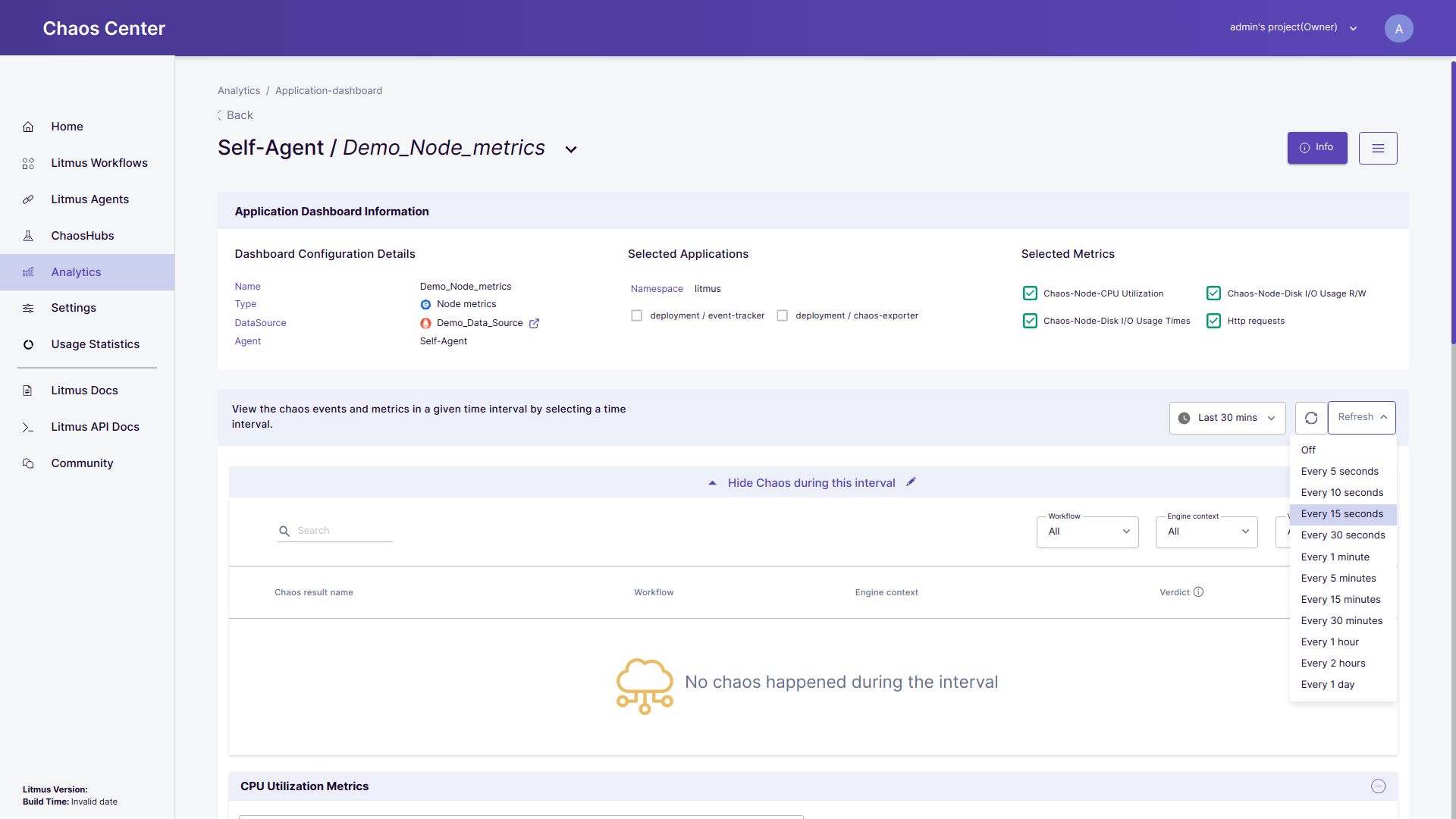 Refresh rate: As the metrics data for a given data source is updated so to query and update all the graphs on the dashboard you may provide a refresh rate. By default, the refresh rate is set at 15 seconds.